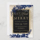 Convite marinho de neve de folha de ouro no Natal