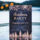 Hora de celebrar o Natal e o Natal com este rosa de luxo flocos de neve com brilho dourado faíscas e floresta de pinus com brilho rosa em um elegante fundo azul-aquarela festivo marinho, com uma tipografia moderna e legal, perfeita para o festival de negócios de Natal, festas de funcionários e muito mais!