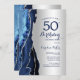 Marinho azul e prata agate 50º convite de aniversário. Elegante design moderno com cor azul-real de água agate marble geode fundo, faux glitter prata e script de tipografia. Trendy convida o cartão perfeito para uma comemoração de dia das mulheres na moda. Impressos convites Zazzle ou modelo de impressão digital instantânea para download.