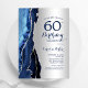 Marinho azul e prata agate 60º convite de aniversário. Elegante design moderno com cor azul-real de água agate marble geode fundo, fonte falsa de ouro brilhante e script de tipografia. Trendy convida o cartão perfeito para uma comemoração de dia das mulheres na moda. Impressos convites Zazzle ou modelo de impressão digital instantânea para download.