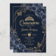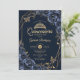 Marinho azul e ouro Quinceanera convite para comemoração. Apresenta borboletas douradas, rosas de aquarela, tiara e fontes de script. Perfeito para uma elegante celebração de glam estilo princesa. Personalize com seus próprios detalhes. Impressos convites Zazzle ou modelo de impressão digital instantânea para download.