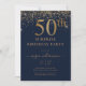 Convite Marinho Dourado brilhante elegante 50ª Festa de an