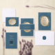 Convite Marinho Dourado Oval Floral Boho Salvar Data