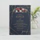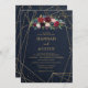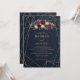 Cartão de Convite para Casamento Floral Elegante Dourado e marinho