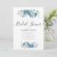 tema do casamento azul com flores azuis e brancas. O texto e as cores podem ser editados.