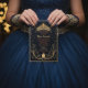 Este Convite de festas Quinceañera tem belos detalhes de ouro nas esquinas com uma bela coroa artística no centro. As cores são marinho e ouro. E muito espaço para preencher todos os detalhes maravilhosos para uma gloriosa festa de margarida.