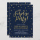 Celebre seu dia especial com este modelo de convite de festa moderno e elegante. Este design apresenta confetes dourados texturizados e caligrafia com fundo marinho.