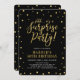 Celebre seu dia especial com este modelo na moda moderno de convites de aniversário. Este design apresenta um confete texturado de ouro chic e caligrafia com fundo de marinho.