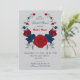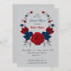 coroa botânica romântica vermelha e marinho azul flores em chá de panela de fundo de cinza