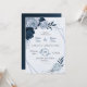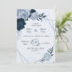 marinho elegante, azul e flores azuis poeirentas, convite de casamento geométrico botânico Os detalhes da brilha são simulados