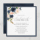 Convite Marinho Elegante Azul Blush Floral Bridal Lunchee