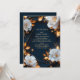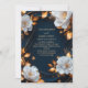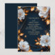 Este luxuoso modelo de convite para o casamento apresenta um belo fundo azul marinho adornado com flores brancas tipo seda e folhas radiantes de ouros ao longo das fronteiras. O design oferece uma sensação de brilho e sofisticação, com um centro espaçoso e desajeitado perfeito para detalhes personalizados, como nomes, datas e informações de locais. Ideal para casamentos modernos e românticos, esta modelo é elegante, de alta resolução e personalizável, garantindo um convite maravilhoso e memorável para o seu dia especial.