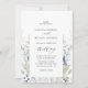 Aprecie os amigos e a família com este elegante convite para casamento com um delicado verde-aquarela e azul e floral branco armando seus detalhes de casamento. Elementos modernos de caligrafia escrita à mão. De volta em tom elegante de marinho. Também disponível em azul empoeirado ou em branco com floral. Parte de nossa coleção "Elegant Bliss" com uma variedade de convites coordenadores, inserções de cartões, acessórios de correspondência, salvamento de datas, cartas de agradecimento e sinais de eventos e produtos.
