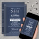 Você pode guardar um segredo? Convide colegas, colegas de trabalho, família e amigos para uma elegante e excitante celebração surpresa de aposentadoria com convites de festas marinho azul e branco personalizados. Toda a redação desta modelo é simples de personalizar, incluindo a mensagem que diz "Shhh! É uma SURPRESA." O design apresenta uma fronteira striped moderna sobre um fundo ombre azul-marinho, tipografia vintage deco clássica e caligrafia com script na moda. A design neutra do ponto de vista do gênero também é adequada para um homem ou para uma mulher. Parabéns e feliz aposentadoria!