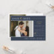 Coloque um anel à volta da data para dizer aos seus convidados para salvar a data sobre os vossos núpcias! (Instruções abaixo — leia) Este convite moderno para salvar a data apresenta caligrafia elegante e letra simples da tipografia sans serif com uma fotografia e um código QR num fundo azul marinho com linhas falsas de ouro, anel de coração dourado e texto branco/dourado para um olhar limpo minimalista e moderno, que é uma bela maneira de dizer aos seus convidados para informarem sobre o seu próximo casamento. Anuncie à sua família e amigos que vai se casar com este convite e adicione um toque pessoal com belas fotos de você e sua próxima metade melhor. A simplicidade desta design adiciona um toque de elegância ao seu casamento. Funciona bem com muitos temas de casamento e definitivamente um excelente extra para o seu casamento. Basta personalizar os nomes e o texto em alguns passos fáceis e personalizar o cartão de convite com sua foto do casal feliz e substituir o Código QR pelo seu. —INSTRUÇÕES COM O LOCAL DA DATA DE ANEL— Para alterar o posicionamento do anel, clique no botão azul 'editar usando a ferramenta design na seção de personalização. Nota: A elegante caligrafia dos termos "Salvar a Data" e "Convite Formal para Seguir", assim como as linhas e outros trabalho de arte gráficos e elementos não podem ser editados, apagados ou movidos. Eles estão consertados. Se precisar alterar a cor, você pode personalizar o cartão de convite. Você pode personalizar e personalizar o convite para ajustado das suas necessidades de evento de casamento e clicar em personalizar o convite. Você pode personalizar facilmente o convite com o texto como um download digital e enviá-lo eletronicamente e compartilhá-lo com seus convidados através de mensagem de texto, email ou mídia social. Ou também pode optar por enviar/postar o convite relativo aos seus detalhes aos seus convidados. Ou você pode receber ambos — convite impresso e receber o convite em formato digital como um download instantâneo.
