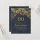 Convite de aniversário azul-90 Elegante marinho com luzes de cordas de ouro brilhantes e boque cintilante. Entre em contato conosco para obter ajuda sobre a personalização ou o produto correspondente