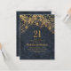 Convite de festas azul-aniversário de 21 anos Elegante com luzes de cordas douradas e boque cintilante.