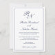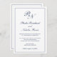 O estilo tradicional All In One Wedding Invitation com um design simples e clássico com seu monograma inicial e seus nomes em um dentro de caligrafia elegante de uma fronteira fina. A parte traseira tem seus detalhes de convidado eliminando a necessidade de uma placa de gabinete separada. Todos os elementos de design estão em azul marinho sobre um fundo branco e podem ser alterados na ferramenta de edição design. Estes elegantes Convidados Todos em Um Casamento são perfeitos para um casamento formal.
