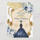 Convite Marinho Elegante Princesa Floral Azul Quinceañera