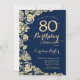 Convite Marinho Elegante Rosa Azul Dourado 80 de Aniversár