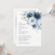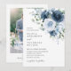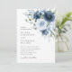 Um convite de casamento em aquarela floral azul e azul-marinho elegante e empoeirado, apresentando um design refinado de foto no verso para casais que desejam beleza e sentimento.
