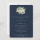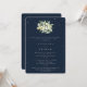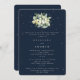 Um convite para janto de ensaio de casamento de marinho escuro, para quando o ensaio e o janto estão em dois locais separados. Apresentando um buquê/poste de groselhas de neve pintadas manualmente e eucalipto. Todo texto é totalmente editável e os pontos dispersos na frente e atrás podem ser excluídos antes de fazer o pedido, se preferir. Por favor, veja esta Coleção na minha loja para ver os arranjos florais do alternativo, cores diferentes e para coordenar itens.