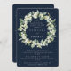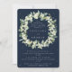 Um convite para janto de ensaio de casamento de marinho escuro, para quando o ensaio e o janto estão em dois locais separados. Apresentando uma coroa de groselhas de neve pintadas manualmente e eucalipto. Todo texto é totalmente editável e os pontos dispersos na frente e atrás podem ser excluídos antes de fazer o pedido, se preferir. Por favor, veja esta Coleção na minha loja para ver os arranjos florais do alternativo, cores diferentes e para coordenar itens.