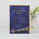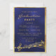 Um cartão de convite para uma festa de formatura de 2025 (ou qualquer ano). Glamoroso com elegante e moderno fundo azul e clássico do marinho e decorado com notas falsas de música dourada. A cor azul é irregular. Modelo para detalhes de nome e festa. Com uma falsa armação de ouro. O texto Graduação e o nome são escritos com um script de estilo manuscrito moderno. Ouros. Fundo: fundo azul com notas de música de ouro.