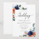 Marinho e convite de casamento floral laranja queimado. Mão elegante pintou o convite de casamento floral de aquarela. Trabalho de arte de aquarela original. Marinho e ferrugem de flores laranja e verde. Vá para Personalizar link Adicional para alterar a fonte, o tamanho e a cor.
