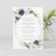 Convite Marinho Floral Blue Greenery Dourado Casamento