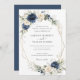 Marinho Floral Blue Greenery Dourado Cartão de Convite para Casamento. Elegante Eucalyptus Greenery Dourado Blue Weditation Modelo
