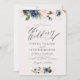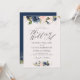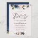 Convite marinho floral com letra de roteiro e casamento