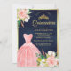 Convite Marinho Floral Cor-de-Rosa Azul Quinceanera Dourad