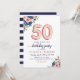 Marinho Floral Blue Blush Pink Balloon 50th Aniversário Convite O design apresenta marinho de aquarela azul e flores cor-de-rosa pinceladas com sotaque rosa dourado. Se você quiser mudar os balões numerados, sinta-se à vontade para me enviar um e-mail em panggadesigns@gmail.com