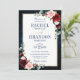 Marinho vermelho-escuro com cruz de cor-de-água, modelo de convite floral cor-de-rosa para casamento, com Dourada armação e ouro com folhagem botânica verde e folhas de eucalipto em fundo azul-marinho. Esta design fácil de personalizar pode combinar facilmente com as cores do casamento, estilos e temas e é uma escolha perfeita para o meio do outono ou casamentos no inverno. Você pode encontrar mais designs correspondentes na minha loja ou entrar em contato comigo se precisar de ajuda na personalização do design.