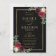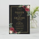 Marinho vermelho-escuro com cruz de cor-de-água, modelo de convite floral cor-de-rosa para casamento, com Dourada armação e ouro com folhagem botânica verde e folhas de eucalipto em fundo azul-marinho. Esta design fácil de personalizar pode combinar facilmente com as cores do casamento, estilos e temas e é uma escolha perfeita para o meio do outono ou casamentos no inverno. Você pode encontrar mais designs correspondentes na minha loja ou entrar em contato comigo se precisar de ajuda na personalização do design.
