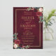 Marinho vermelho-escuro com cruz de cor-de-água, modelo de convite floral cor-de-rosa para casamento, com Dourada armação e ouro com folhagem botânica verde e folhas de eucalipto em fundo azul-marinho. Esta design fácil de personalizar pode combinar facilmente com as cores do casamento, estilos e temas e é uma escolha perfeita para o meio do outono ou casamentos no inverno. Você pode encontrar mais designs correspondentes na minha loja ou entrar em contato comigo se precisar de ajuda na personalização do design.