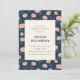 Celebre seu formando com este elegante convite para festa de formatura floral. Com um fundo azul marinho adornado com flores cor-de-rosa macio, este design na moda combina minimalismo moderno com um toque de charme de safra. A caixa de texto personalizável fornece espaço para detalhes do evento, fazer perfeito para celebrações de segundos graus e formandos. Personalize com o nome do formando, o ano da classe, o local e as informações de RSVP.