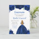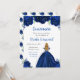 Este convite da Quinceanera apresenta flores florais azuis marinhos brilhantes e uma bela princesa com cabelo loiro e um vestido elegante. Isto é perfeito para uma festa de aniversário de Quinceanera.