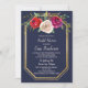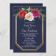 Um belo chá de panela floral com flores de cor-de-água, cor vermelha, ameixa e creme rosa + uma moldura dourada contra fundo azul marinho. Entre em contato comigo se quiser ajuda para personalizar este chá de panela.