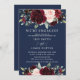 Convite Marinho Floral Russo Burgundy Blush Festa de noiva