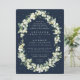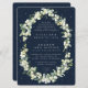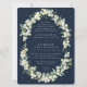 Amoras de neve pintadas à mão e caules de eucalipto dispostos em um belo quadro botânico contra fundo marinho escuro. Todo texto é totalmente editável e os pontos dispersos na frente e atrás podem ser excluídos antes de fazer o pedido, se preferir. Veja esta Coleção na minha loja para convites com opções de texto de alternativo, diferentes cores/formas/tamanhos e para coordenar itens.