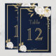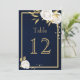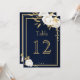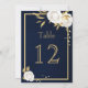 número de tabela personalizável elegante flores brancas de cartão com algumas folhas douradas marinho cartão azul da tabela
