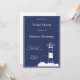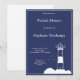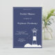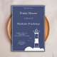 Elegante e simples chá de panela azul marinho com uma ilustração de um farol para um casamento do tema marinho e náutico!