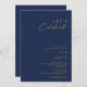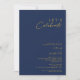 Este marinho moderno e minimalista azul | o convite para comemorar o vamos de ouro é perfeito para a sua comemoração típica do boho. Seu design simples, único e abstrato, acompanhado de um roteiro mínimo contemporâneo e de uma paleta escura de cor azul-marinho dá a este produto uma sensação de luxo formal elegante enquanto permanece simplista, boêmia chica. Mantenha-o como está ou escolha personalizá-lo com trabalho de arte ou gráficos de sua escolha!