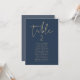 Este gráfico de números de tabela apresenta uma fonte manuscrita elegante e um design moderno minimalista com combinação de cores azul e ouro marinho. Altere facilmente o número e os nomes, juntamente com todas as cores, para corresponder totalmente ao seu evento.