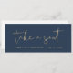Esta placa de cabeçalho do assento apresenta uma fonte escura manuscrita e um design moderno minimalista com um marinho azul e dourado emparelhamento. Edite facilmente o texto inferior e altere todas as cores para corresponder ao seu evento.