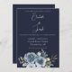 Convite Marinho Moderno e Casamento Clássico Floral Azul B
