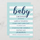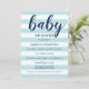 Os convites para chuveiros de bebê chic apresentam faixas horizontais claras aqua azuis e brancas com texto azul marinho contrastante que pode ser personalizado para o seu evento. As cores de fundo azul-aqua e marinho podem ser personalizadas.