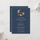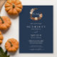 Convite De Casamento De Monograma De marinho. Este convite de casamento elegante e rústico apresenta cor d'água queimada manualmente, laranja queimada e folhas de terracota, creme e dahlias beige, e belas rosas de cor ferrugem perfeitas para um casamento de outono ou outono! A parte de trás do convite é marinho azul para coordenar com a parte frontal. Localizar itens correspondentes na Coleção Romance de outono do Marinho.
